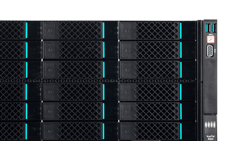 KunTai R524 存储型服务器是尊龙凯时数码基于鲲鹏处理器推出的新一代 ARM数据中心服务器。。。主要面向存储业务,,,,具有海量存储、、、、高性能、、、低功耗以及易扩展的特点,,,适合为大数据分析、、、、软件定义存 储等应用场景的工作负载进行髙效加速。。。